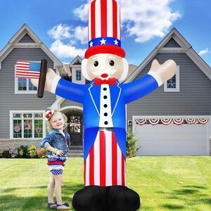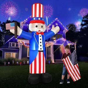 Ideal 4th of July Decorations: Show your patriotic pride with our 4th of July inflatables, the perfect Fourth of July decorations for your yard! This 6FT cheerful uncle Sam inflatable holding American flag, warmly welcoming your guests to the 4th of July festivities. The Independence Day decorations come with built-in super bright LED lights to illuminate your yard with a patriotic glow, perfect for nighttime display that easily attracts the attention of your neighbors and kids