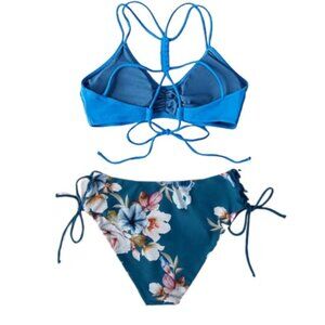 6.🆕Large Cupshe Braided Back Bikini Top with Floral Reversible Bottom NWT