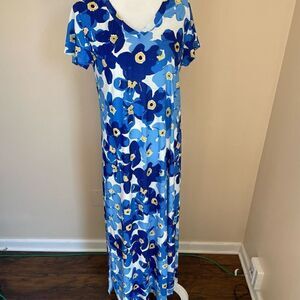 Misslook, in royal blue, yellow and white floral print, cotton blend Maxi shirt dress, with side slits on both sides. Breathable, cute, and lightweight, can be worn several ways for any season. Worn with sandals in the summer or paired with a Jean jacket and some booties in the fall.