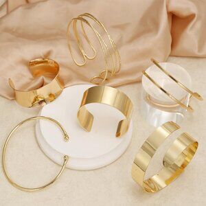 6PCS Arm Cuff Jewelry Set — Trendy, minimalist gold upper arm bangles for women.