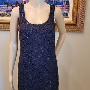 6P navy sequin dress so elegant and beautiful on, brand new condition just hanging out in closet for years
