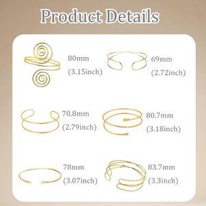 Features: This set includes 6 stylish upper arm cuffs made from high-quality, polished metal with a sleek, minimalist design. The open cuff style makes them easy to wear and adjust, perfect for adding a touch of glamour for parties, dance nights, or everyday chic. No sharp edges, safe to wear, with a long-lasting, non-fading shine.