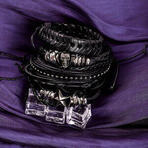 Features: A pack of six stylish cuff bracelets featuring braided leather, skull, lion head, evil eye designs, and more. Lightweight, soft, and comfortable—great for stacking or wearing solo. Perfect to dress up casual outfits or add some rocker flair.