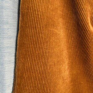 Worn only a few times. Mid-high waist, cropped, hits 2-3 inches above ankle at 5'10. Lands' End Tall Size 6, Rust Like New, Corduroy Pant