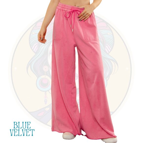 6V BLUE VELVET Wide Leg Drawstring Waist Pants in Pink