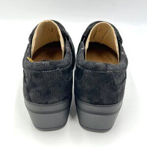 Clarks women's Talen Pace Black Interest slip on comfort shoes with slip resistant soles.
