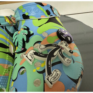 The Steven Harrington Classic Crocs 208143-90H are new unisex men's size 4 and women's size 6 clogs, featuring a slip-on closure and a multicolor design. These casual clogs are perfect for travel, activewear, and everyday wear during the summer, fall, and spring seasons. Made with comfortable and breathable materials like polyurethane and rubber, these Crocs offer a stylish and convenient option for both men and women looking for a practical and fashionable footwear choice.