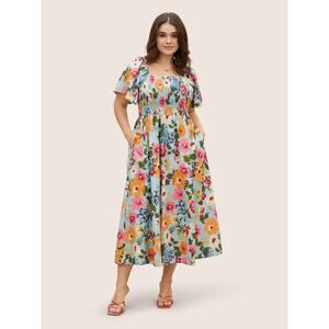 6X 30 Plus Size BloomChic Floral Square Neck Pocket Flowy Midi Dress