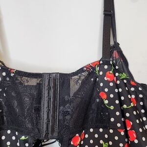 6X 30W Torrid Black Polkadot Red Cherries Lace Bodysuit Underwire Lingerie Boudior adjustable straps lace up details cherry print. Measurements for reference only approximately neck to hem 22" under arm to under arm 24" wt 10oz