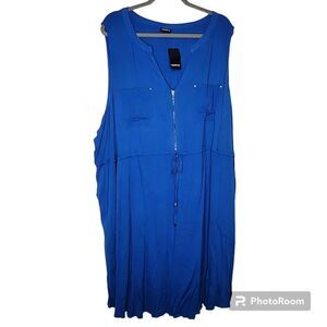 6X 30W Torrid Blue Mini Textured Rayon Shirt Dress Zip V Neck Drawstring Chest pockets sleeveless. NWT Torrid. Measurements for reference only approximately shoulder to hem 42" under arm to under arm 33" wt 1lb