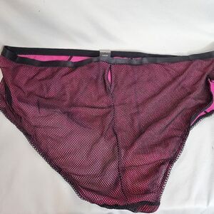 6X 30W Torrid Pink Black Fishnet Satin Binding Panty Hipster Lingerie Boudior sheer keyhole back mid rise medium coverage, satin knit fabric. NWT Torrid. Wt 4oz
