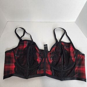 6X 30W Torrid Red Plaid Strappy Bralette Lingerie Longline Goth Punk Rock Unline