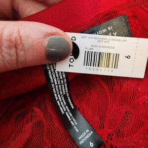 6X 30W Torrid Red Shimmer Lace Mid Rise Brief Removeable Garter Panty Lingerie Boudior Sheer medium coverage, foil shimmer lace. NWT Torrid. Wt 4oz
