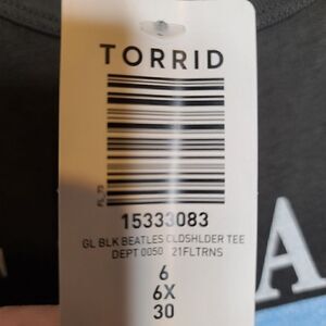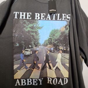 6X 30W Torrid The Beatles Cold Shoulder Tee Classic Abbey Road Music 1960s Retro tee crew neck raw edge roll hem black mineral wash Grey. NWT Torrid. Measurements for reference only approximately neck to hem 29" under arm to under arm 31" sleeve inseam 4" wt 8oz