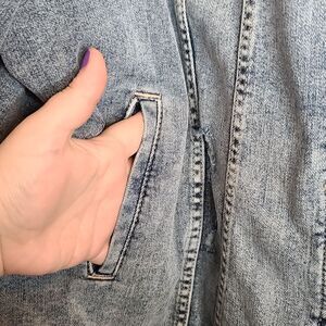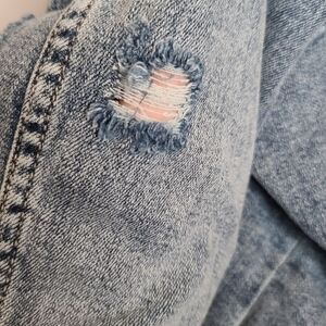 6X 30W Torrid Destructed Denim Jean Jacket Light Wash Trucker Distressed Boho long sleeve, button front. NWT Torrid. Measurements for reference only approximately shoulder to hem 27" under arm to under arm 32" sleeve inseam 19" wt 2lb 7oz 12×17×1