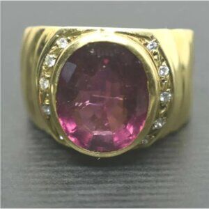 6ct Rubellite Tourmaline VS2 GH Diamond Ring 11g 18K Gold GIA $6550