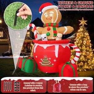 Festive & Eye-Catching Christmas Display Bring the holiday spirit to life with our gingerbread Christmas decorations. Featuring Bright built-in LED lights, this Christmas inflatable outdoor decoration transforms your yard into a unique Christmas garden