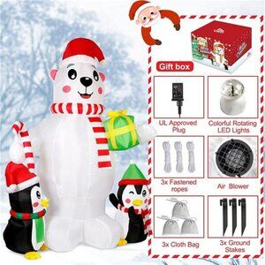 6ft Inflatables Polar Bear with 2 Penguins, Blow Up with Rotating LED Lights