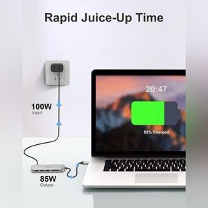 4. Powerful Charging Capability: Our multiport USB-C Dongle boasts a 100W Power Delivery (PD) input, enabling you to charge your laptop and connected devices at lightning speed. Say hello to uninterrupted productivity as you power through your tasks.