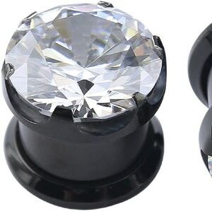 6mm Black Cubic Zirconia Stainless Steel Ear Plugs