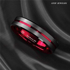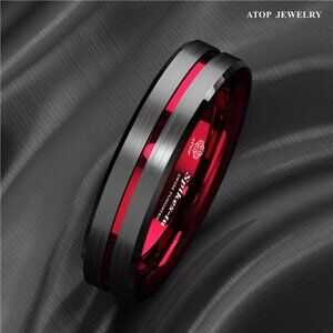 6mm Black Red Line Men's Wedding Band Ring - Perfect for Men and Women