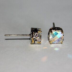Beauty for Ashes Throne Room Mini CZ Earrings are beautifully checker cut cz's in a variety of color choices in a 6mm size. The old world design features two tone settings in 18K yellow and white gold plating over brass. The post is a center style post which means it won't sit at the bottom of your earlobe, makes for a more flattering earring. Color choices in additional listings are: Clear, Jet Black, Pink Ribbon, Pale Canary, Amethyt, Peridot Green, Aurora Borealis AB, Sapphire Blue.