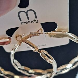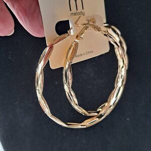 6 pair goldtone hoop earrings with lever back. Woven look, lightweight, 2". Brand New in pkg. Great for gifts or resale.