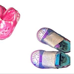 6pairs Toddler shoes-Skechers twinkle toes Minnie Mouse clogs, swim shoes sz 5/6