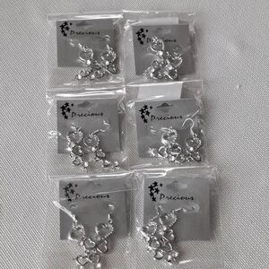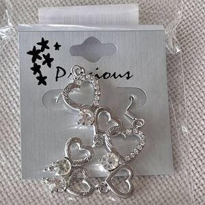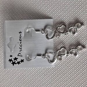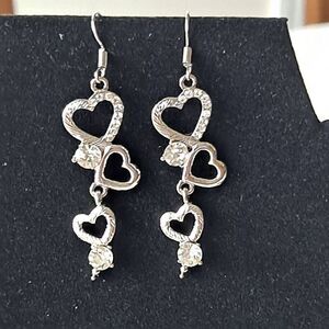 Pretty dangle earrings with fish ok finding.  3 hearts dangle, 2 are textured, 1 is polished.  Rhinestone embellished.  Hand 2.25".  Great for small gift, party favors or reselling.  Brand New in pkg.