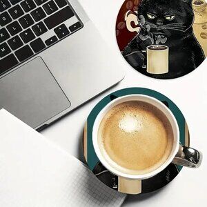 6-piece Coffee Black Cat Design Wooden Coasters - Elegant Decoration for Home and Office, Table Protection and Anti-slip Mat, Heat Resistant, Perfect for Parties and Festivals, Great for gifts or just a special treat for yourself. I mean you need some place to put that cup when you're spilling the tea!