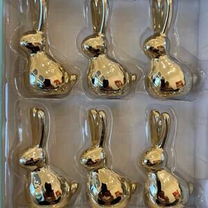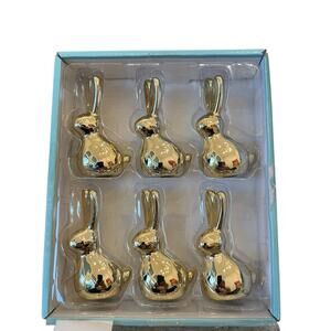 6pc Martha Stewart Gold Bunny Rabbit Figurines 3.25in Ceramic Easter Decor New