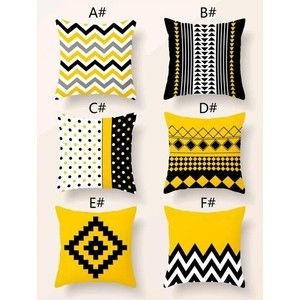 6pcs Set Geometric Throw Pillow Cover Without Filler Yellow Black 17 x 17 inches