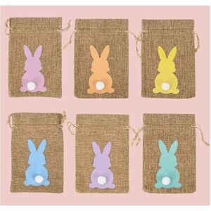6pcs Bunny Rabbit Pompom Treat Gift Bag