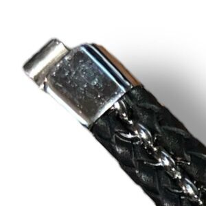 7 1/2” Faux Leather & Stainless Steel Bracelet