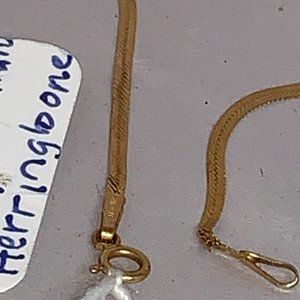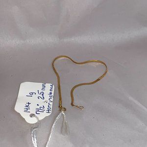 14 kt gold herringbone bracelet that is 7 1/2" long and 2.5 mm wide and 1 grams.