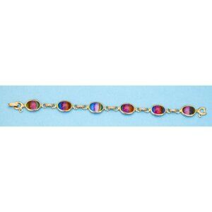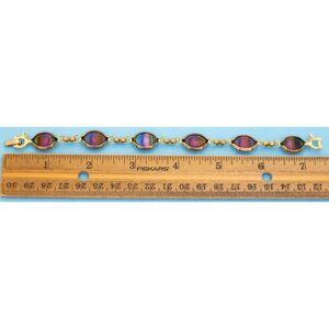 7 1/4 inch, Vintage Round Oval Rainbow Gem Gold Tone Bracelet - N35