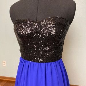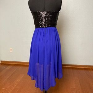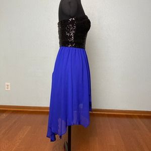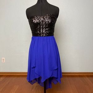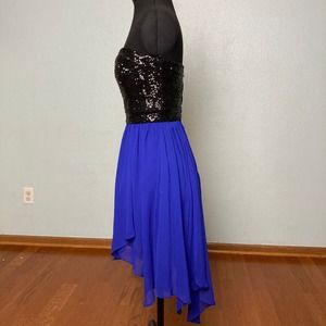 7 8 B. Darlin Black Blue sequin handkerchief midi dress Strapless prom formal