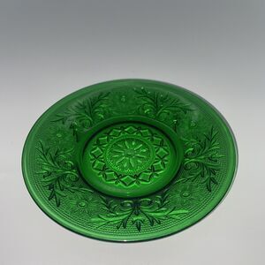 (7) Anchor Hocking green Sandwich pattern 4.5 saucer.