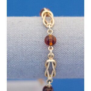 7 inch gold tone bracelet with brown beads by avon