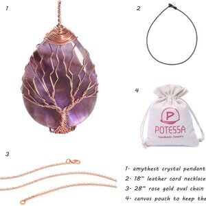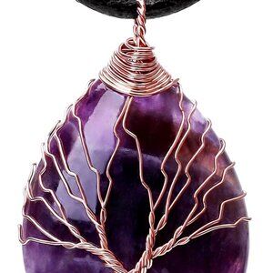 AMETHYST NECKLACE: Crystal pendant necklace comes with 2.5 mm black genuine leather cord and 1 rose gold chain. The crystal stone are wrapped in intricate copper wire tree of life, and the copper is oxidized, polished and lacquered. So it will keep its attractive color and bright luster for a long time. The 10-11 mm white turquoise closure is easy to wear and secure, and won't let the amethyst crystal necklace fall off your neck.