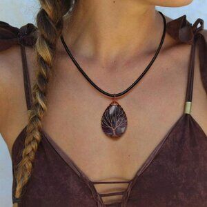 7 Chakra Gemstone Healing Crystals Necklace Copper Wire Wrapped Unisex Leather C