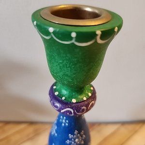 7" Colorful Wooden Candle Holder