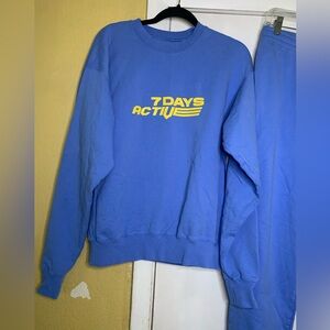 Light blue and yellow letters pit 23” length 25” sleeves 25” round neck