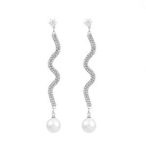 Long Pearl Rhinestone Earrings Earrings Fashion Korean Wave S Curve Earrings Personality Earrings,
