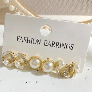 Faux Pearl Moon Geometric Stud Earrings Women's Earring Set Jewelry,