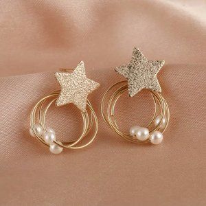 Star & Faux Pearl Decor Drop Earrings Handmade,