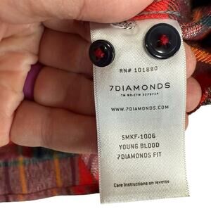 7 Diamond Youngblood Mens Button Up Flannel Shirt Large L/S Red Preppy Prep