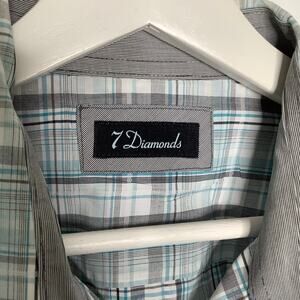 7 Diamonds Blue Gray White Plaid Short Sleeve Button Up Shirt XL