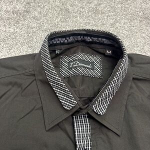 7 Diamonds Button Down Shirt Men Medium Black Long Sleeve Plaid Flip Cuff Casual