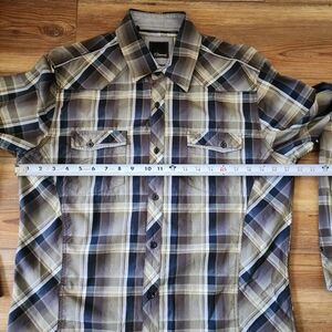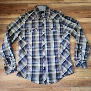7 Diamonds Button Down Shirt Mens L Brown Plaid Long Sleeve